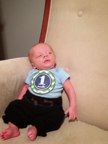 Health: At the beginning of the month when he was born, he had some de-saturation issues when he got mad. His oxygen level would dip down, fortunately the neonatologist thought it was behavioral and he just had to "Mature" and he would outgrow this. He was diagnosed with reflux around 3 weeks and has been on Prevacid. Since starting this, his spitting up and mood have been much better. Had a circumcision at mom's office at 9 days old. Lost umbilical cord at 12 days old.